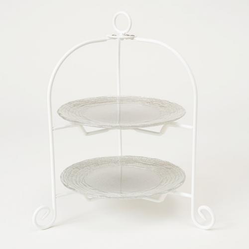 シルバーガラスプレート 2段ケーキスタンド(プレート2枚付)