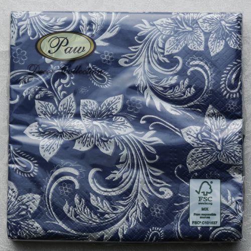 【Paw製】ネイビーカラー&ユリのデザイン★ポーランド製ペーパーナプキン20枚入